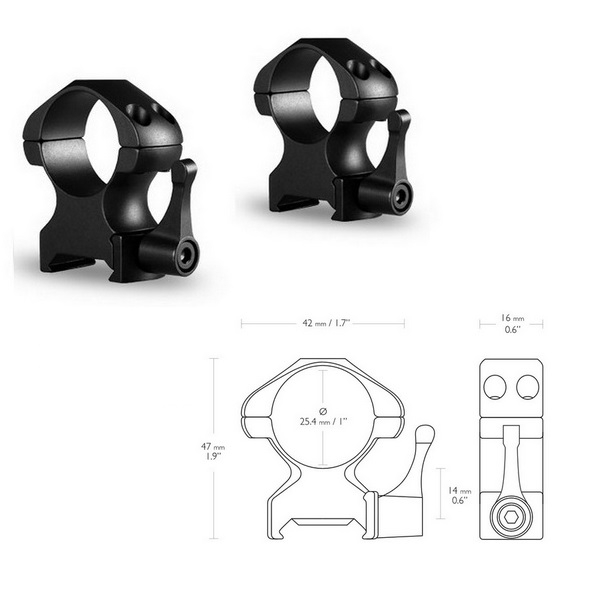 Стальные кольца Precision Fast Release 1"/Weaver/Med предназначены для установки оптических и некоторых коллиматорных прицелов на охотничье и спортивное оружие, имеющее прицельную планку Weaver или Picatinny. Особенностью данных колец является быстросъемный механизм прицела. Благодаря подпружиненному зажимному винту с рычагом, снятие колец перед транспортировкой оружия или для замены прицела займет считанные секунды. Стальные кольца несколько тяжелей, но вместе с тем прочней и долговечней алюминиевых. Они предназначены для крепления прицелов на мощном оружии с повышенной отдачей. Данные кольца отличаются усиленным креплением и стопорным выступом для большей стабильности при отдаче.