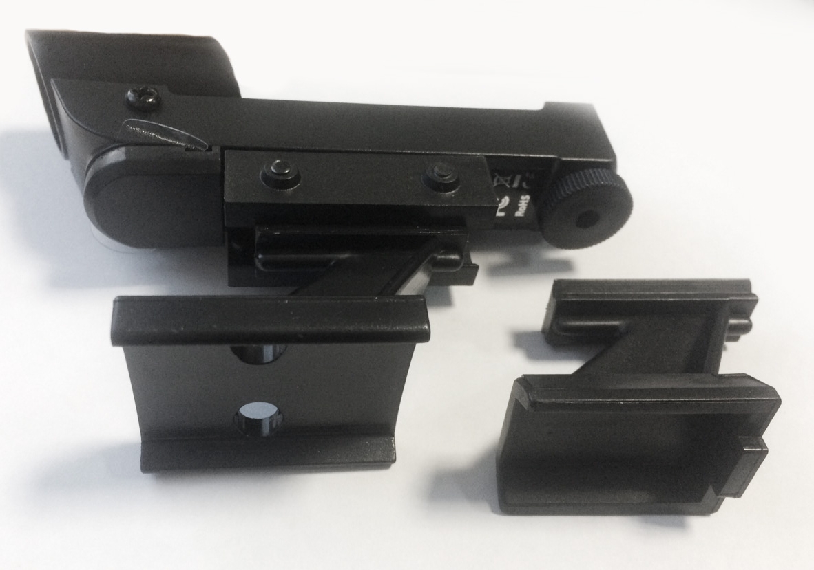 Для настройки искателя параллельно оптической оси телескопы предусмотрены юстировочные винты по азимуту и высоте. Установка на трубу телескопа осуществляется за считанные секунды с помощью крепления «ласточкин хвост».