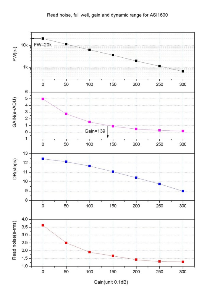 Благодаря встроенному 12-битному ADC и низкому шуму считывания, камеры ASI1600 Pro имеют динамический диапазон в 12,5 стопов, что больше чем в камерах на популярном чипе KAF8300 (привет, SBIG!).