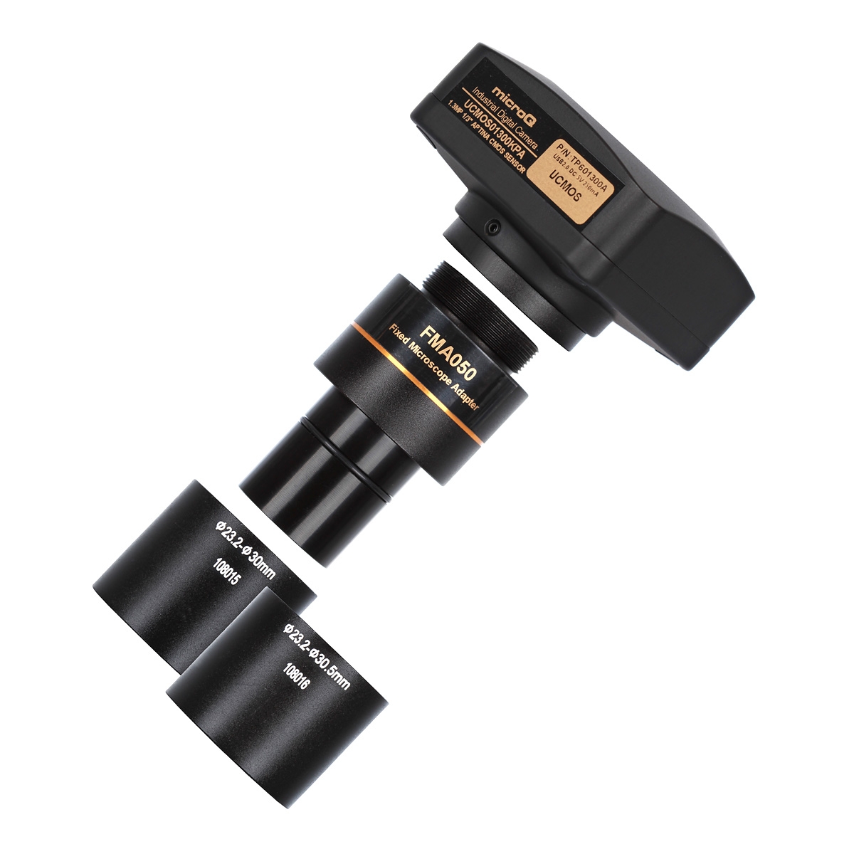 Конструкция камеры универсальна, она подходит к большинству видов выпускаемых микроскопов и телескопов(c диаметром окуляра 23 мм, 30 мм и 30.5 мм). Для этого в комплекте есть соответствующие переходники. Для микроскопов с монокулярной, бинокулярной или тринокулярной головкой объектив камеры просто вставляется в окулярную трубку вместо окуляра и фиксируется штатным крепежом. Для использования с телескопом, необходимо использовать переходник на 30.5 мм, который идёт в комплекте.