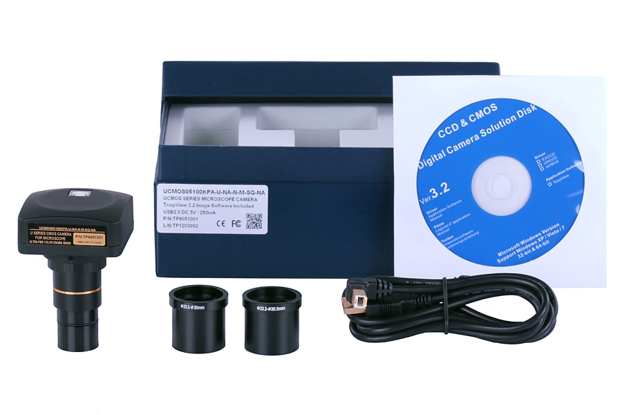 Конструкция камеры универсальна, она подходит к большинству видов выпускаемых микроскопов и телескопов(c диаметром окуляра 23 мм, 30 мм и 30.5 мм). Для этого в комплекте есть соответствующие переходники. Для микроскопов с монокулярной, бинокулярной или тринокулярной головкой объектив камеры просто вставляется в окулярную трубку вместо окуляра и фиксируется штатным крепежом. Для использования с телескопом, необходимо использовать переходник на 30.5 мм, который идёт в комплекте.