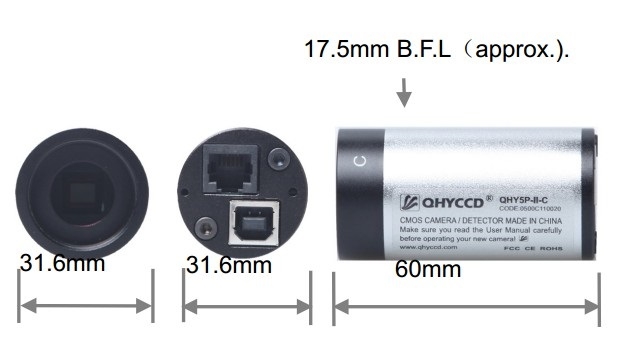 Обновлённая чёрно-белая камера QHY5-II получила новый компактный корпус, который позволяет устанавливать камеру непосредственно в фокусёр 1,25". Также в камере используется матрица от другого производителя - Aptina и новая обвязка, что позволило повысить максимальную скорость считывания до 30 кс на полном разрешении и избавится от артефактов.