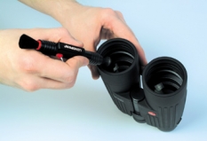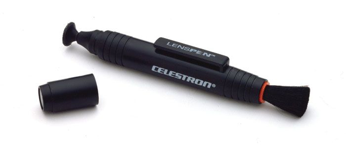 С одной стороны карандаша находится выдвигающаяся кисточка, сделанная из мягкой натуральной щетины и предназначенная для удаления пыли и крупных частиц с оптических элементов.