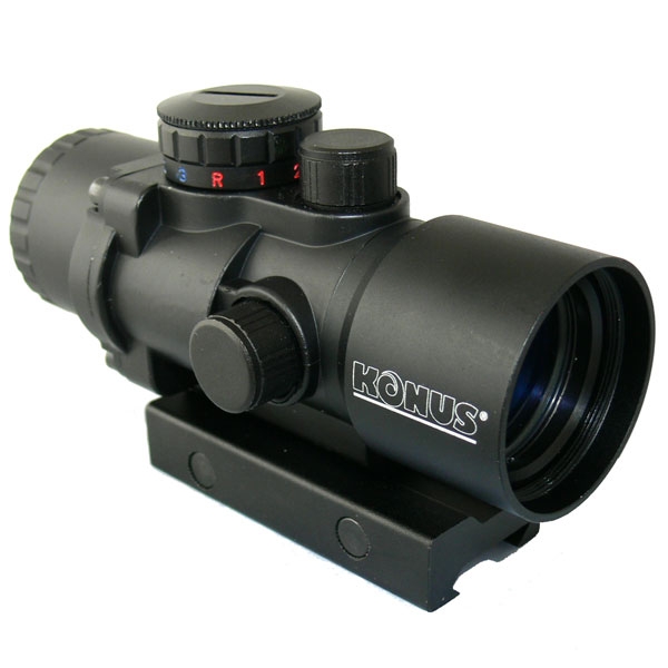 Прицел Konus SIGHT-PRO PTS1 имеет 3х кратное увеличение и диаметр выходной линзы 32 мм. На прицеле установлен качественная оптика, на которую нанесено специальное просветляющее покрытие. Прицельная сетка имеет 3 разных цвета подсветки (красный, синий, зеленый) и 3 уровня интенсивности каждого цвета.