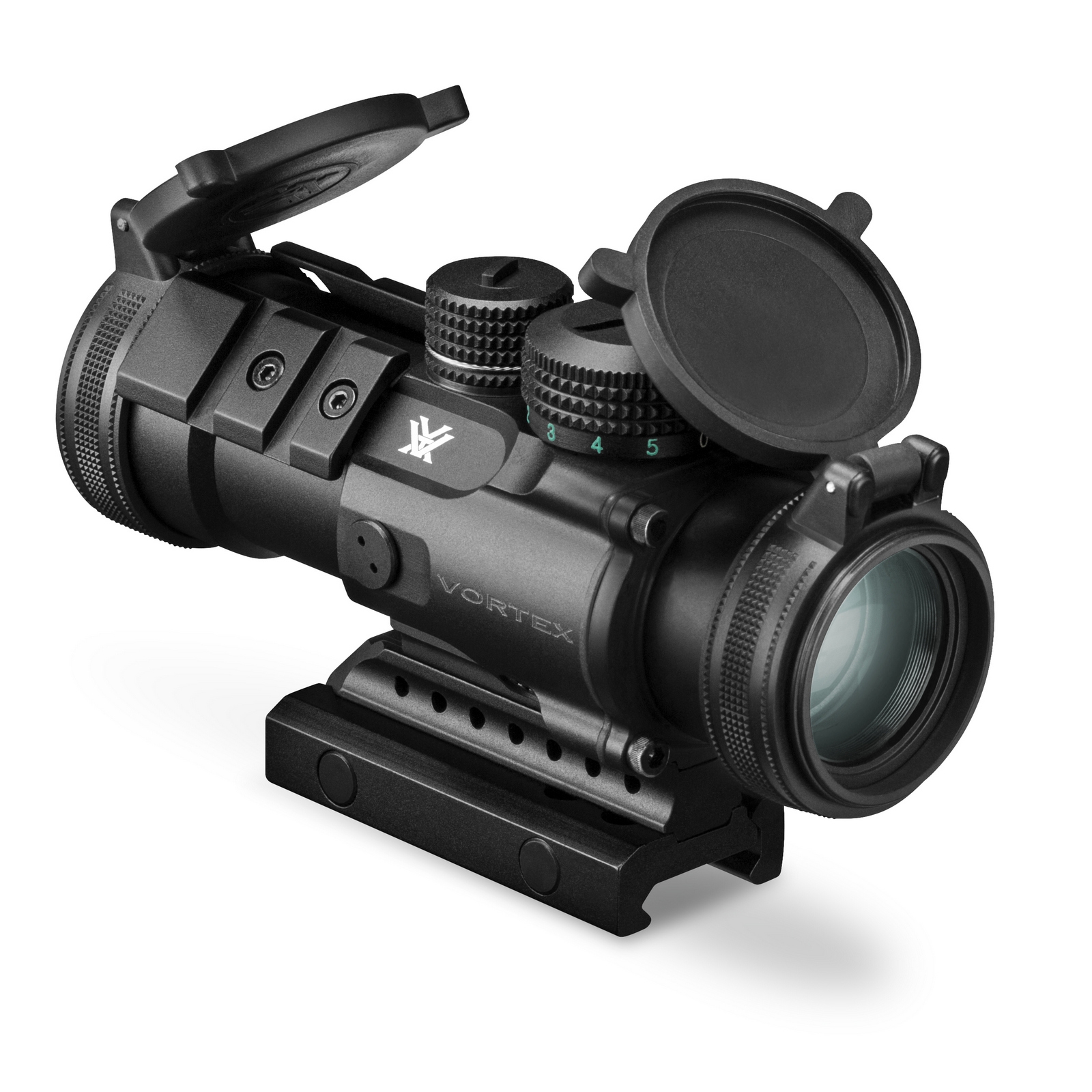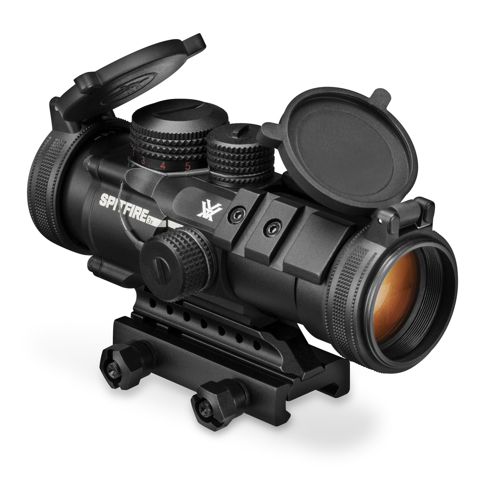 Призматические прицелы с фиксированной кратностью десятилетиями устанавливались на автоматическое оружие благодаря простой, компактной и надежной конструкции, но лишь не многие из них приблизились к Vortex Spitfire 3х (Weaver/Picatinny) по сочетанию производительности и цены. Водозащищенный, азотонаполненныйт прицел с полным многослойным просветлением оптики и трехкратным увеличением оснащен монтировкой со сменной высотой и полуавтоматическими крышками объектива и окуляра типа Flip-Up. Специальная прицельная сетка EBR-556B (MOA) позволяет вести прицельную стрельбу на расстоянии до 500 ярдов из оружия многих популярных калибров, и в первую очередь из автоматического оружия калибра 5.56х45 (.223 Remington). Прицельная сетка выгравирована на призме и может использоваться, как с красной или зеленой подсветкой, так и без подсветки, что делает прицел всегда готовым к использованию.