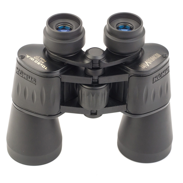 Бинокль Konus KonusVue 10x50 WA - классический бинокль с полностью металлическим корпусом, армированным нескользящим резиновым покрытием черного цвета. В оптической конструкции бинокля используются широкоугольные окуляры, обеспечивающие очень широкий угол обзора, таким образом, бинокль отлично подходит для проведения панорамных наблюдений, а также наблюдений за движущимися объектами. Данный бинокль может оказаться полезным охотнику, туристу, орнитологу и т.п. Благодаря высокой светосиле бинокль пригоден для наблюдений как днем, так и в сумерках. Бинокль построен по классической схеме с применением Porro призм из стекла BK7, на линзы нанесено специальное просветляющее покрытие, для улучшения яркости и четкости изображения.