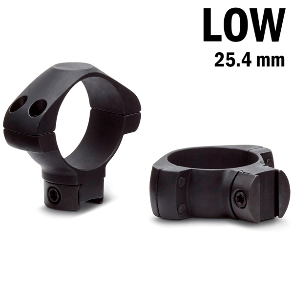 Крепление низкой посадки для прицелов с диаметром трубы 25.4 мм (1 дюйм). Устанавливается на планку "Ласточкин хвост" 11 мм, состоит из раздельных монтажных колец, изготовленных из стали. Рекомендуются для прицелов с диаметром объектива до 32 мм.