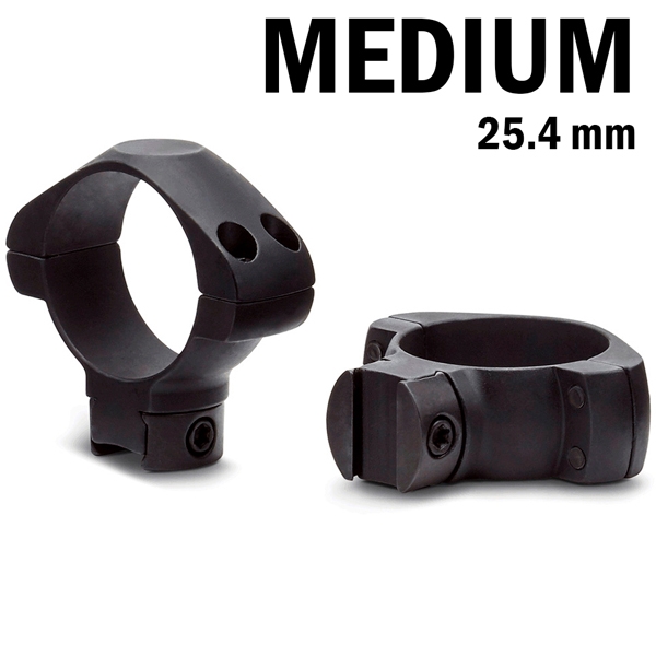 Крепление со средним посадочным профилем для прицелов с диаметром трубы 25.4 мм (1 дюйм). Устанавливается на планку "Ласточкин хвост" 11 мм, состоит из раздельных монтажных колец, изготовленных из стали. Рекомендуются для прицелов с диаметром объектива до 40 мм.