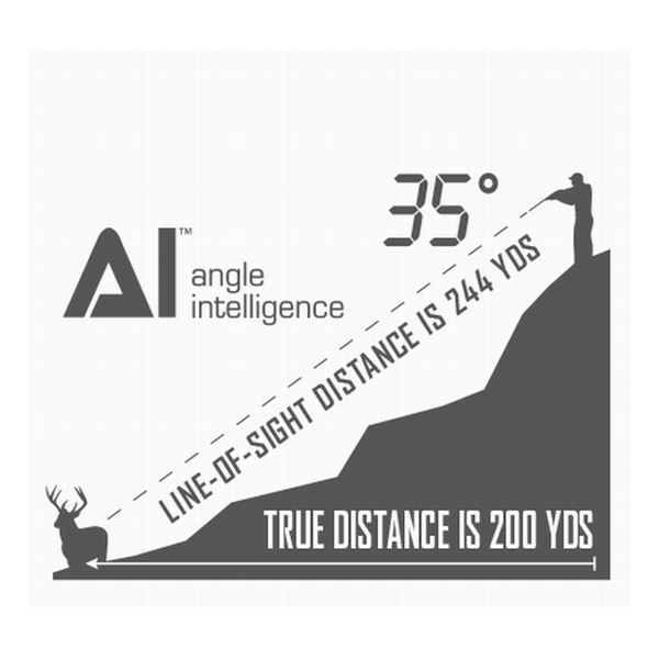 Технология Angle Intelligence позволяет точно определять и учитывать угол наблюдателя по отношению к объекту наблюдения и вносить необходимые коррективы в измерения реальной дистанции до объекта.