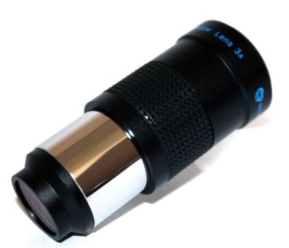 Простая и недорогая 3-х кратная ахроматическая линза Барлоу с многослойным просветлением всех поверхностей, построена по классической двухкомпонентной оптической схеме. Может использоваться во всех телескопах с окулярами с посадкой 1,25”.