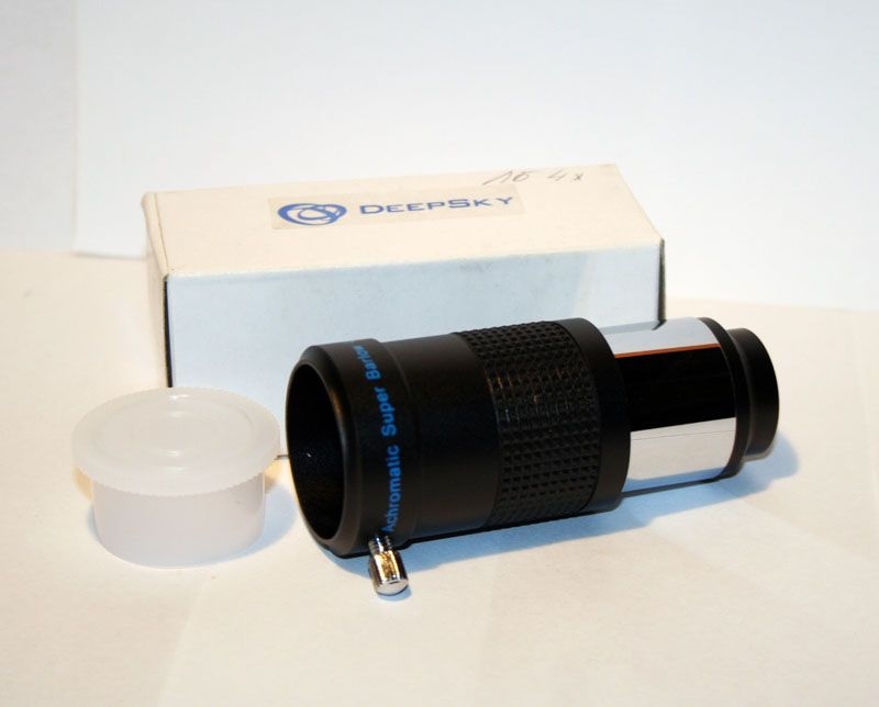 Простая и недорогая 4-х кратная ахроматическая линза Барлоу с многослойным просветлением всех поверхностей, построена по классической двухкомпонентной оптической схеме. Может использоваться во всех телескопах с окулярами с посадкой 1,25”.