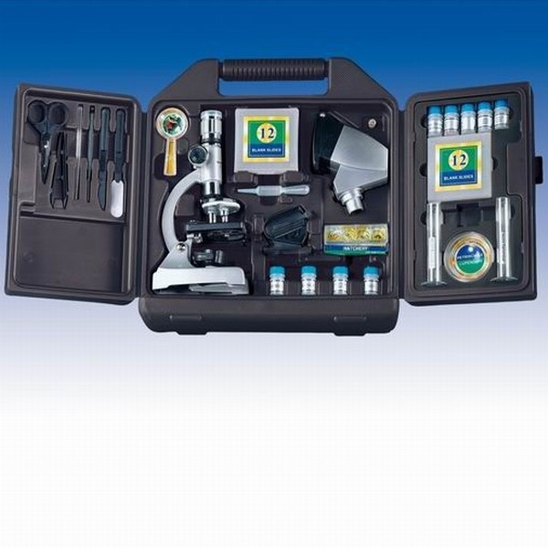 Данная модель рекомендована детям начиная от 8-ми лет и поставляется с широким набором аксессуаров для препарирования, объективов, образцов и препаратов, упакованных в компактный жёсткий пластиковый кейс. Это позволяет без промедлений приступить к исследованиям в домашних условиях без дополнительных затрат времени и денег.