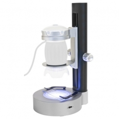 Весьма удобным является то, что микроскоп может быть использован и как классический прибор со стационарным предметным столиком, проходящей и отражающей подсветкой, механизмом грубой фокусировки, и как современный детский цифровой микроскоп, которым ребенок может оперировать одной рукой, рассматривая двухмерные непрозрачные объекты.