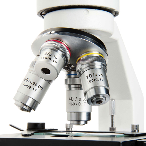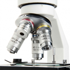 Устойчивый цельнометаллический корпус микроскопа имеет полностью настраиваемое, механическое, ручное управление, так что передвижение предметных стекол по столику не составит труда. Улучшить качество изображения позволят три встроенных цветных фильтра. А конденсор Аббе NA 1.25 с ирисовой диафрагмой сфокусируют нижнюю подсветку, что позволит значительно улучшить качество изображения изучаемых объектов. Помимо этого в комплектацию входят 10 готовых микропрепаратов для дальнейшего детального изучения. Микроскоп станет отличным инструментом для проведения исследований в лабораториях и школах.
