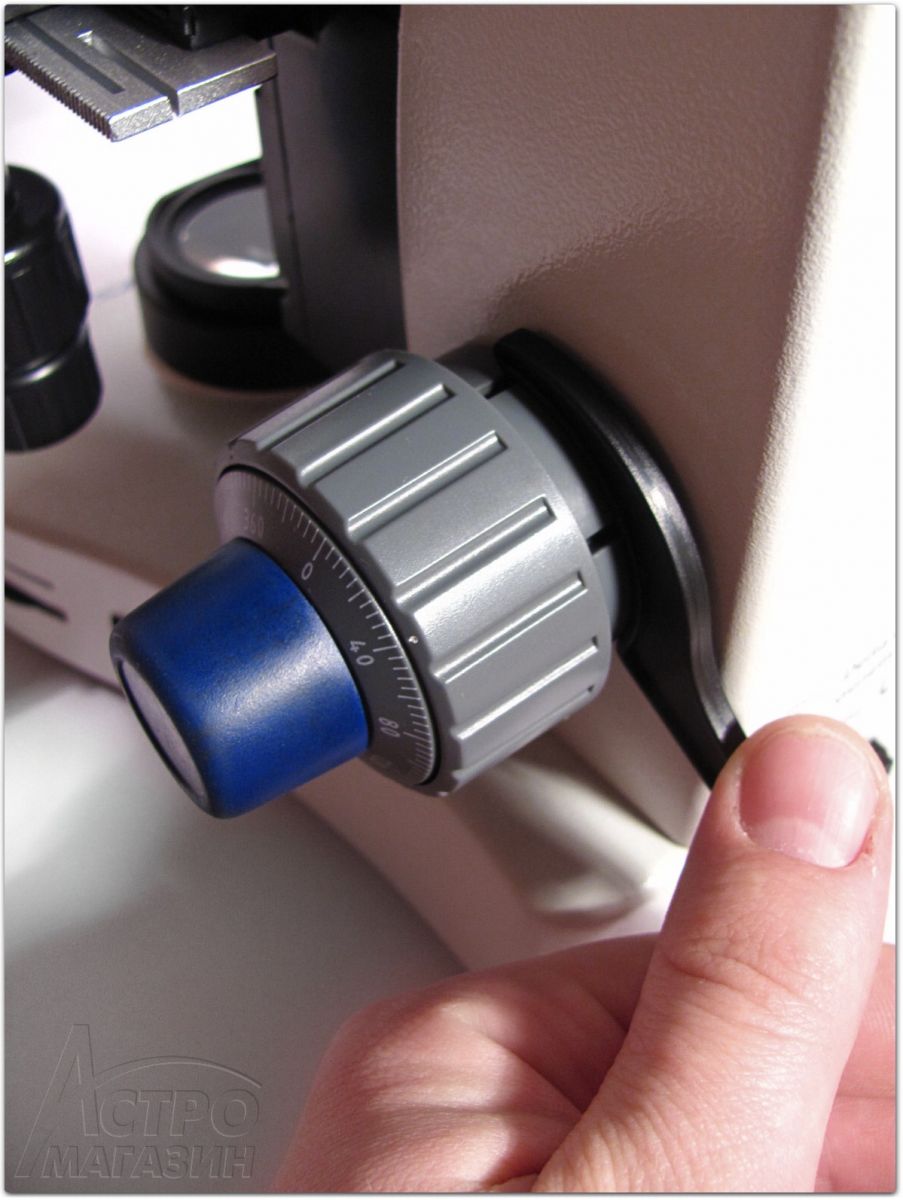 Но и это не всё! Если вас не устроила плавность работы фокусёра, вы можете её настроить под себя. В комплекте с микроскопом идёт пластмассовый ключик для регулировки затяжки гайки, которая отвечает за плавность хода. В общем, сделано с мыслью о профессиональном использовании и с заботой о наблюдателе.