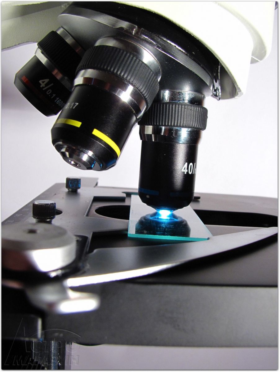 Диафрагма позволяет регулировать яркость освещения поля, а вращая ручку кремальеры, вы можете сфокусировать световой поток почти в точку, или оставить его рассеянным для освещения большого препарата.