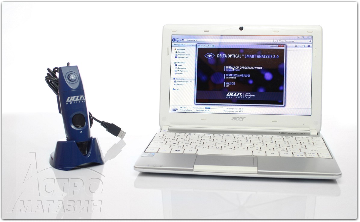 Разумеется, микроскоп не может работать без компьютера. Первым делом устанавливаем программное обеспечение из комплектного диска и только после этого подключаем микроскоп к компьютеру USB-кабелем. Надо сказать, что программа захвата видео с камеры очень проста и удобна в работе.