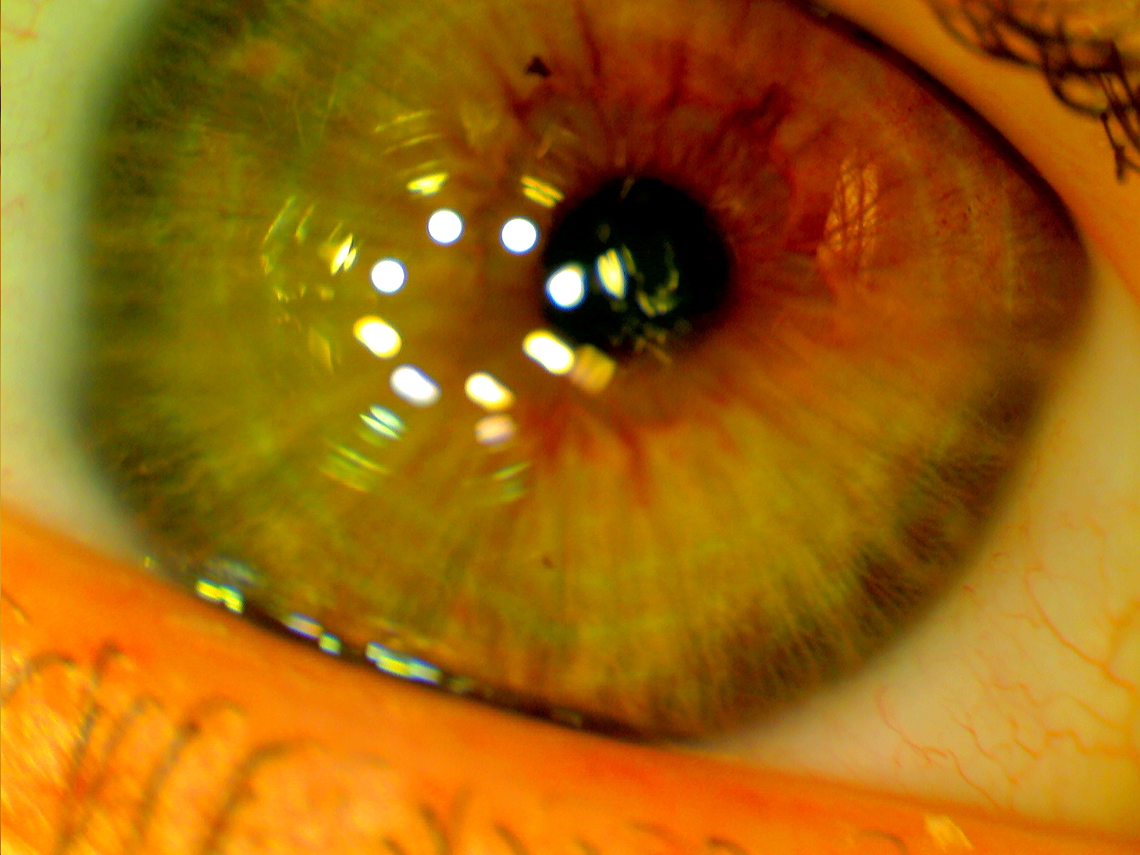 Очень интересно рассматривать радужную оболочку глаза, микроскоп детально передает её структуру и позволяет рассмотреть внешнюю капиллярную сетку глазного яблока.