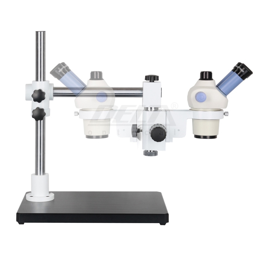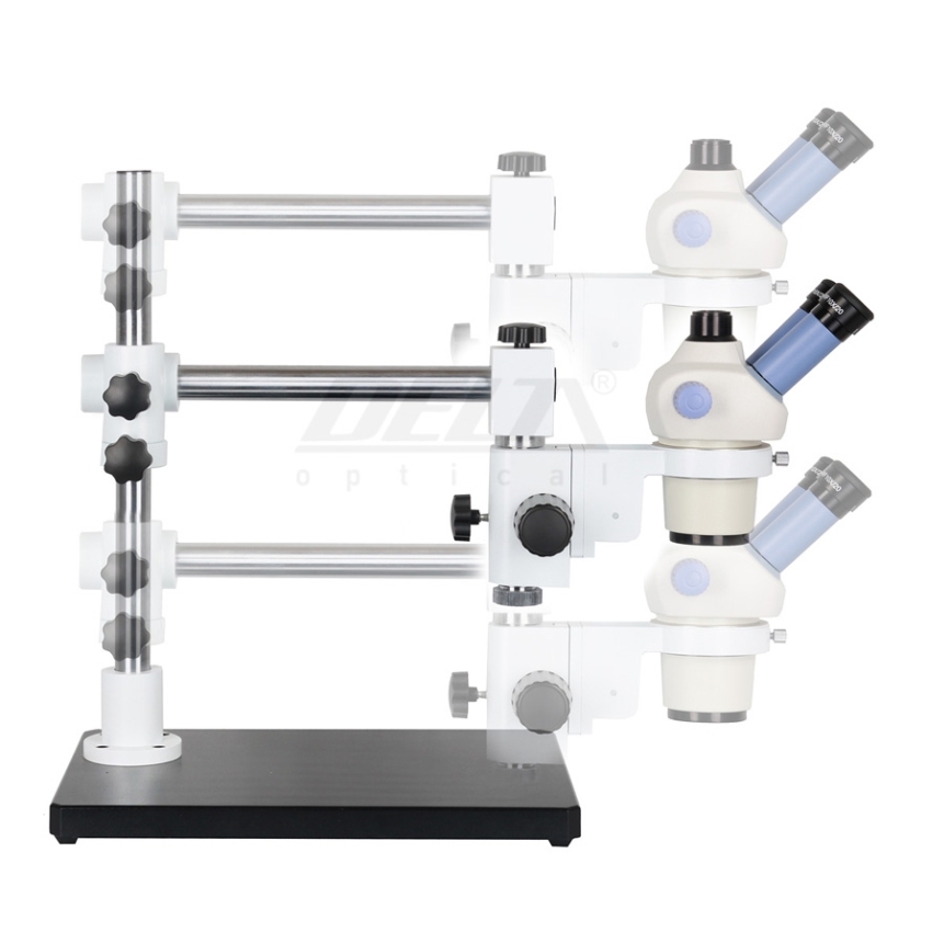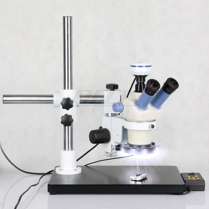 При этом основание занимает намного места, оставляя больше пространства для работы и других инструментов.Благодаря выносной штанге микроскоп можно расположить над лентой конвеера для контроля качества продукции.