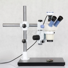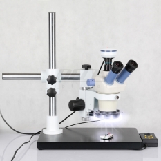Универсальный и очень гибкий в применении инструментальный стереоскопический микроскоп. Стереоскопичность обеспечивает ощущение глубины картинки - вы легко сможете различить что находится ближе к микроскопу, а что дальше. Рабочее расстояние до образца - целых 180 мм, что позволит рассматривать даже крупногабаритные предметы.