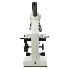 При изучении образцов слайд подсвечивается снизу светодиодом нейтральной цветовой температуры: LED-подсветка потребляет крайне мало энергии и не нагревает препарат при длительном просмотре. Благодаря встроенному диммеру интенсивность свечения диода регулируется бесступенчато, вращением барабанчика в основании корпуса. Металлический корпус микроскопа, с массивным основанием и усиленным профилем штатива, устойчив и прочен. В лабораторных условиях он выдержит любые нагрузки: частое перемещение, случайные толчки и пр. Главное – беречь от механических воздействий хруп­кую стеклянную оптику.