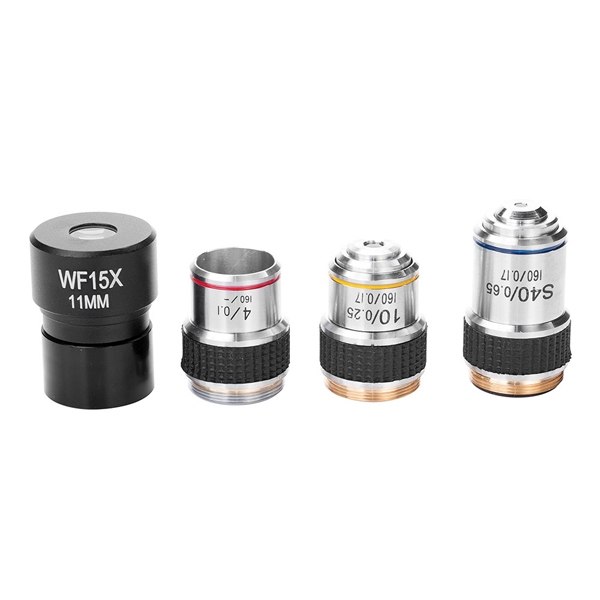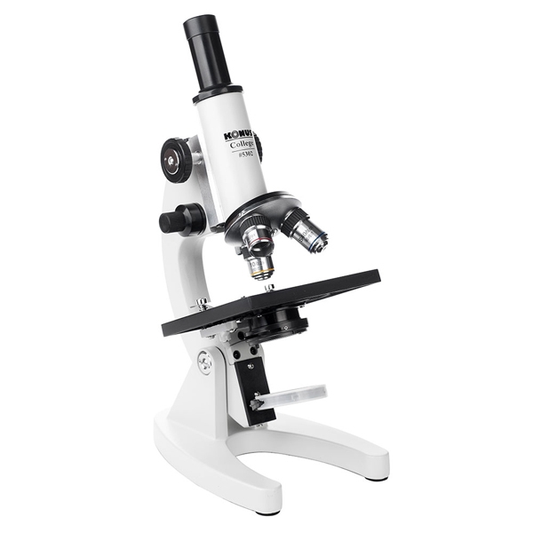 Биологический микроскоп KONUS College 60x-600x предназначен для оборудования школьных кабинетов биологии, лабораторий университетов и профессиональных колледжей. В комплектацию модели входит 15-кратный окуляр и 3 ахроматических объектива кратностью 4, 10 и 40х (последний – с пружинной оправой для предотвращения столкновения с образцом при фокусировке). Таким образом, в базовой комплектации микроскоп способен работать на увеличении 60, 150 или 600х.