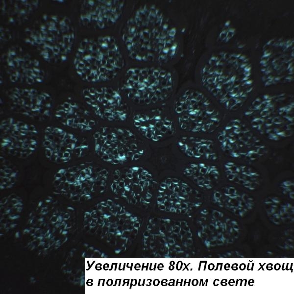 Поляризационная микроскопия построена на особенности различных анизотропных объектов проявлять свои оптические свойства в зависимости от ориентации наблюдения и поляризации света. Когда фильтры (поляризатор и анализатор) расположены напротив под углом 90° друг к другу, при отсутствии объекта свет «закрывается». Объект изменяет направление лучей и становится подсвеченным на темном фоне. Этот метод используется для исследования прозрачных и полупрозрачных объектов: вкраплений в кристаллы минералов, волокон живых тканей и т.п., которые не видны в обычном светлом поле. анализируя такие изменения, можно судить об основных оптических характеристиках анизотропных объектов: силе двойного лучепреломления, количестве и ориентации оптических осей, дихроизме и др.