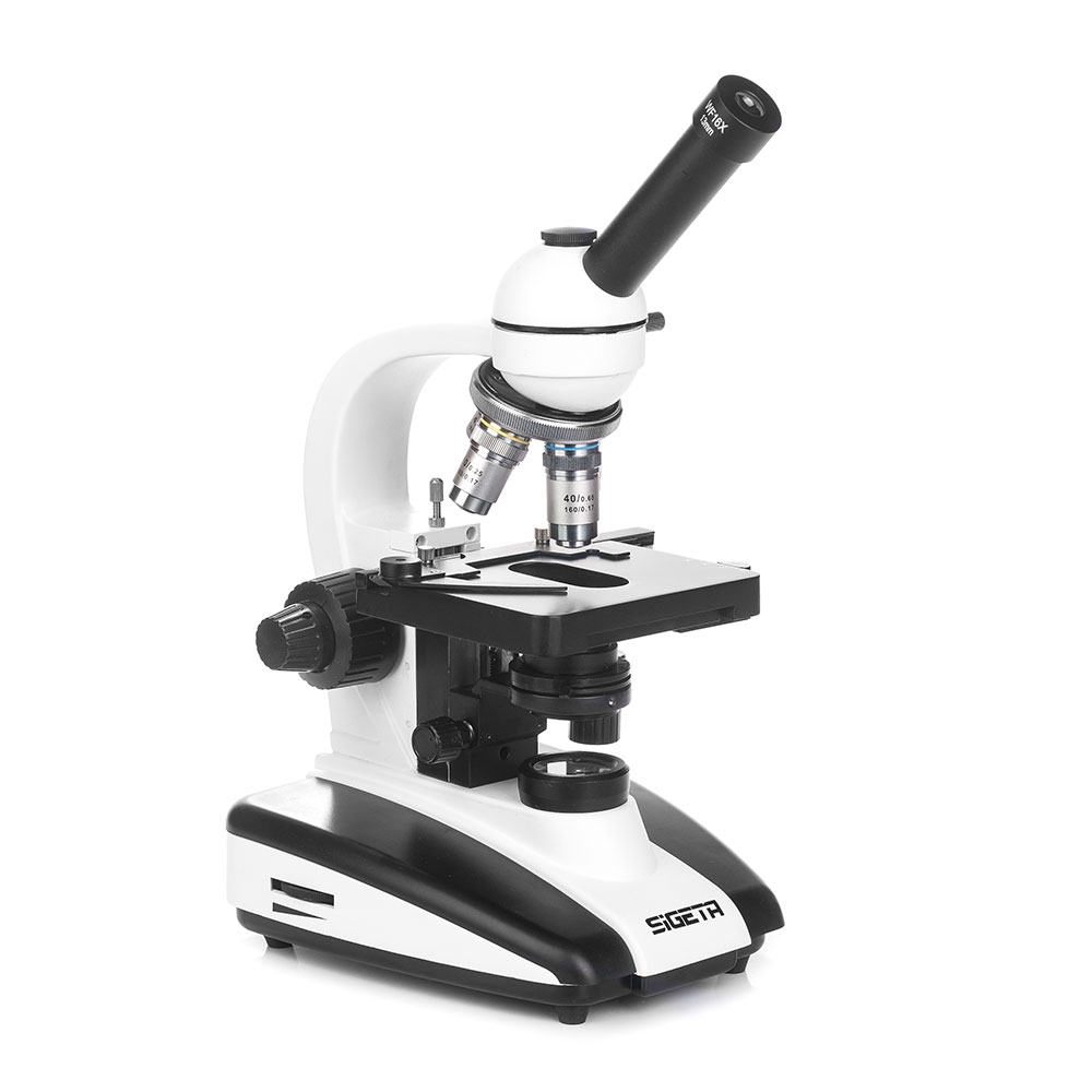 SIGETA MB-401 Dual-View - профессиональный монокулярный микроскоп с дополнительной насадкой для цифровой камеры-окуляра. Предназначен для исследований прозрачных биологических объектов в проходящем свете. Микроскоп комплектуется двумя широкоугольными окулярами 10x и 16x и 4 ахроматическими объективами 4x, 10x, 40x, 100x. Уникальность данной модели в том, что у монокулярной насадки предусмотрена возможность установки специального адаптера для камеры. Это дает возможность наблюдать через окуляр и через экран вашего ПК одновременно. Предметный столик оборудован координатным нониусом и микрометрическими суппортами. Также микроскоп оснащен, механизмом грубой и точной фокусировки, лепестковой диафрагмой и конденсором с механизмом регулировки по высоте. Всё это делает ваши наблюдения максимально комфортными.