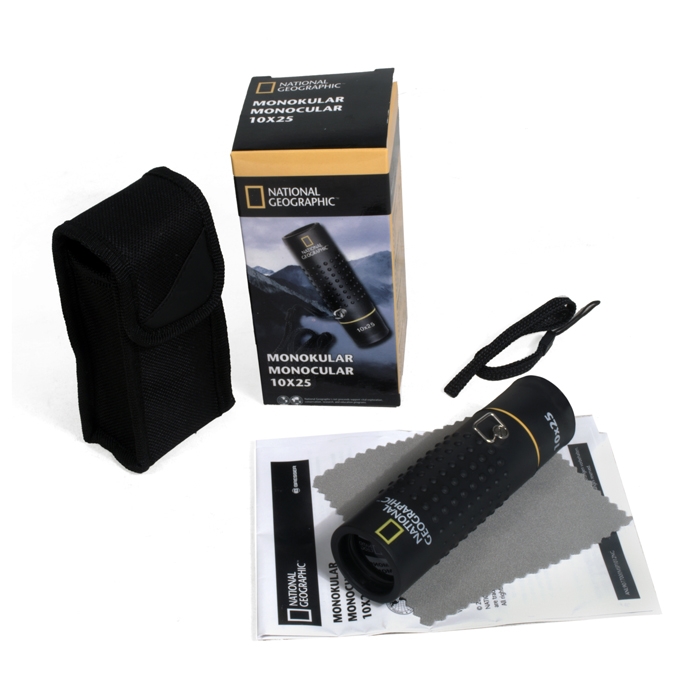 National Geographic 10x25 - доступный по цене монокуляр с оптимальным сочетанием диаметра объектива, увеличения и габаритов. Предельно простой в использовании оптический прибор на каждый день, который всегда может находиться под рукой, будь то карман рюкзака или бардачок автомобиля.