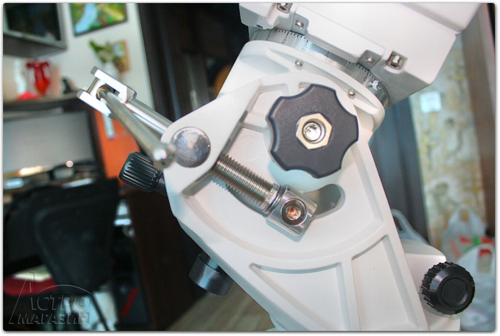 5) Очень удобный и качественный винтовой домкрат для тонкой подстройки положения полярной оси по высоте.