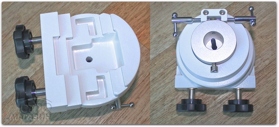 В комплекте монтировки присутствует еще один универсальный держатель монтажной планки, также рассчитанный на два типа планок. Он может быть установлен на ось противовесов, что позволяет монтировке вести одновременно две трубы (например основной телескоп и телескоп-гид).