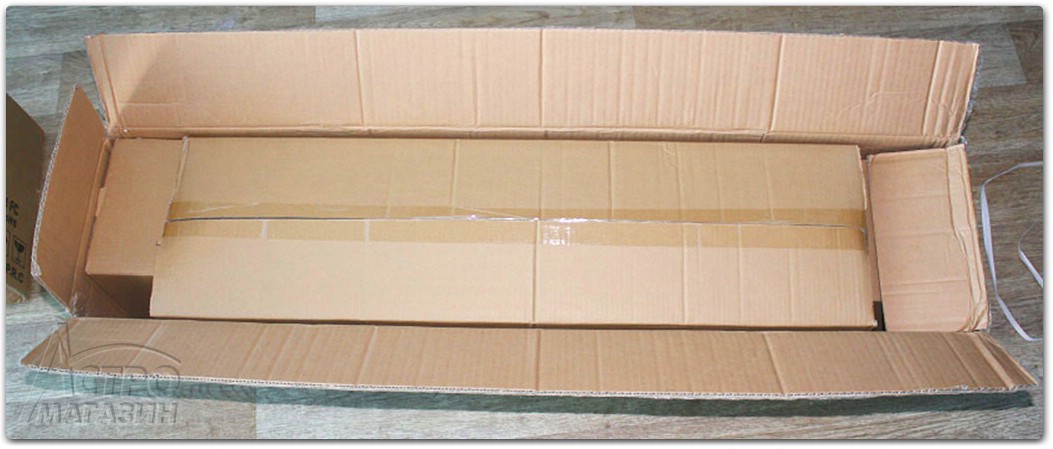 После распаковки коробки с "ногами" внутри находим три отдельных коробки. Средняя из них самая длинная и содержит собственно сами "ноги", а по краям находятся небольшие коробки с противовесами. Следовательно, распакованную монтировку можно будет перевозить в багажнике "седана" без проблем.