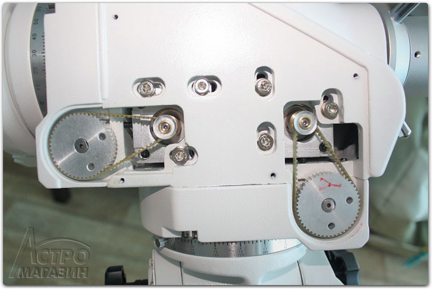 8) На осях установлены энкодеры, позволяющие отжимать оси и вручную перемещать трубу телескопа без потери привязки к небесным координатам.