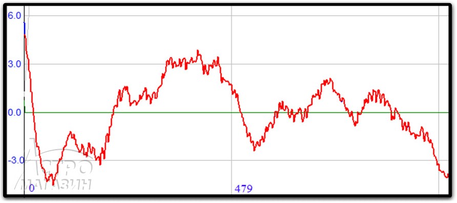 Настоящий же восторг начинаешь испытывать тогда, когда проанализируешь график периодической ошибки. Звезда за 8 минут (время одного оборота червячного вала) отклоняется от своего положения в обе стороны максимум на четыре с небольшим угловые секунды. При этом, среднеквадратичное отклонение звезды составляет от 1.6" до 2.3". Мало того, периодика достаточно плавная. Наибольшая скорость звезды от средней звездной скорости составляет от 5% до 9%. Есть все основания ожидать, что если достаточно хорошо настроить PPEC, то размах периодики можно уменьшить вдвое, а то и в трое, а значит снимать телескопом с фокусным расстоянием 50-100см можно будет без гидирования. Естественно, что нужно хорошо выставить полярную ось.