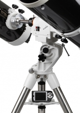 Голова монтировки имеет вес около 15.5 кг и достаточно немалые габариты, порядка 40 сантиметров в поперечнике. И все-таки она немного легче обычной EQ6 Pro. При этом может нести трубу телескопа до20 кг!