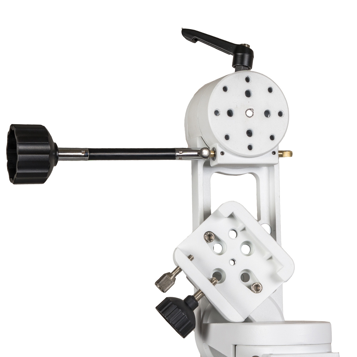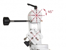Альт-азимутальные монтировки удобны для просмотра наземных объектов, но не имеют той простоты наведения и слежения за небесными объектами на больших увеличениях, что предоставляют экваториальные монтировки. Также, часто азимутальные монтировки не позволяют наблюдать объекты в зените - труба телескопа упирается в треногу. Но не в случае с монтировкой Sky-Watcher AZ5. Благодаря системе регулировки угла наклона полу-вилки, на которой устанавливается телескоп, возможно без проблем наблюдать объекты в зените с телескопами до 150мм в диаметре. Стоит учесть что при такой конфигурации монтировки уменьшается максимальная нагрузка - с 12-ти до 8-ми кг.