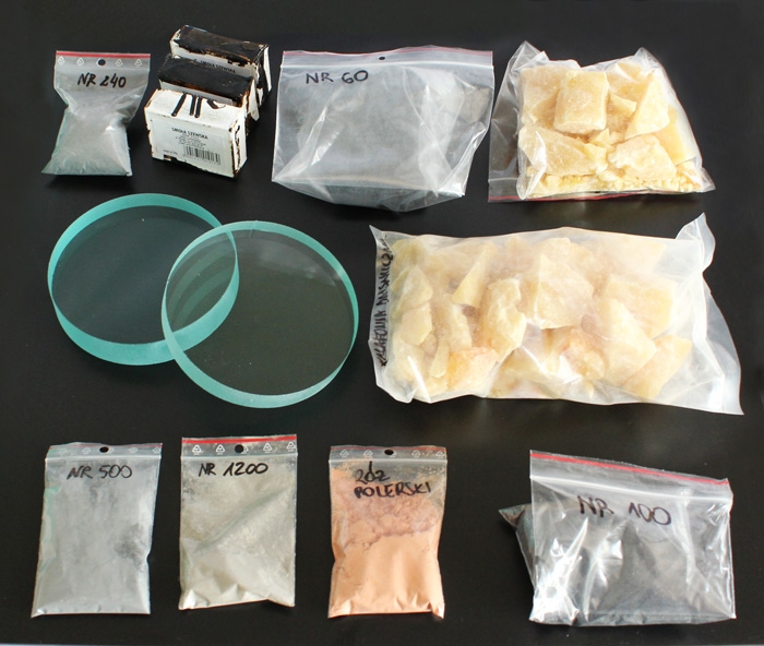 • Две 150мм заготовки из термополированного стекла (для инструмента (шлифовальника) - толщина 19мм и заготовки (зеркала) - 25мм)