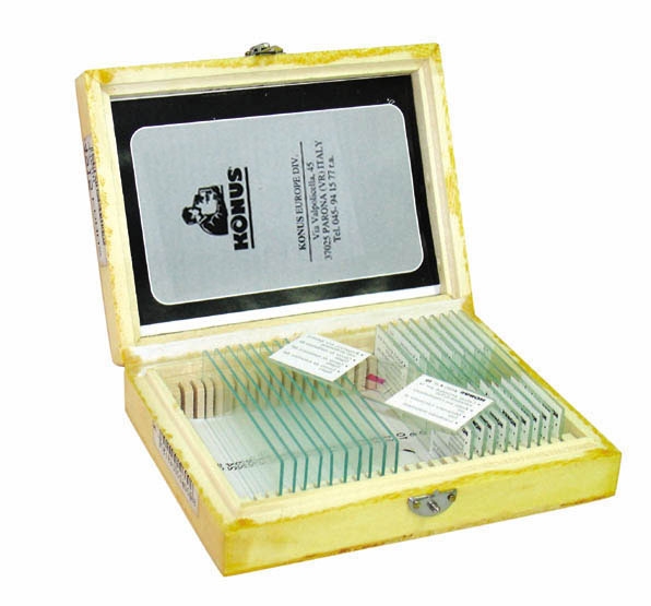 Набор из 10 подготовленных слайдов в удобной деревянной коробочке. Внутри Вы найдете не только подготовленные образцы, а и набор из пустых предметных и покровных стекол (10 шт) для создания собственных слайдов.