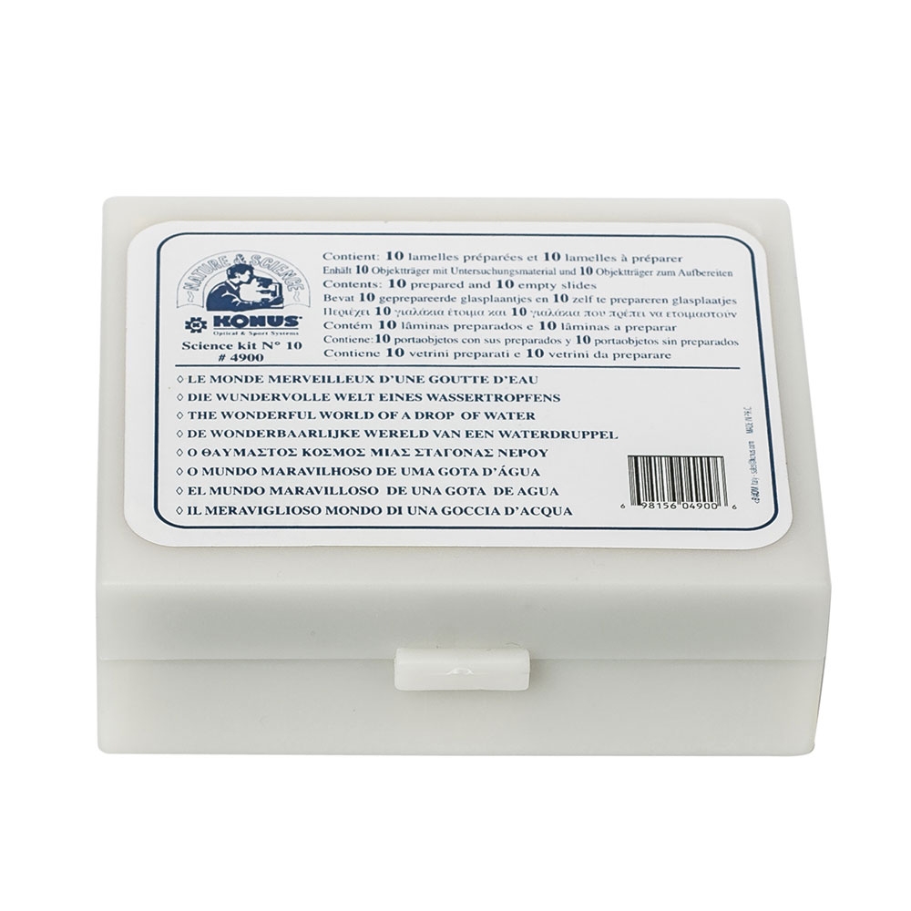 Набор из 10 подготовленных слайдов в удобной коробочке. Внутри Вы найдете не только подготовленные образцы, а и набор из пустых предметных и покровных стекол (10 шт) для создания собственных слайдов.