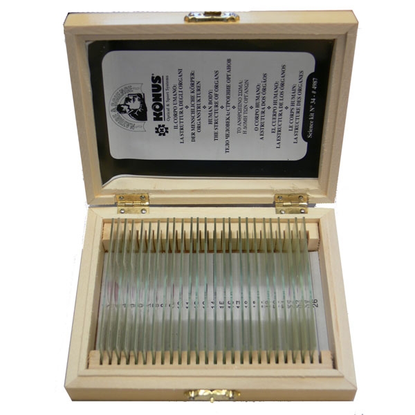 Набор из 25 подготовленных препаратов в удобной деревянной коробочке.