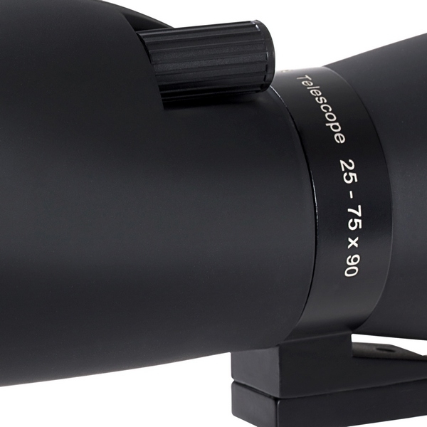 Из удобств использования Praktica Hydan 25-75x90/45 стоит отметить возможность поворота трубы вокруг своей продольной оси при установке на штатив. Таким образом нет необходимости постоянно вести наблюдение с верхней позиции. Наблюдатель может развернуть окуляр в сторону либо вниз. Защитная бленда предохранит оптику от капель дождя, либо предотвратит нежелательные солнечные блики.