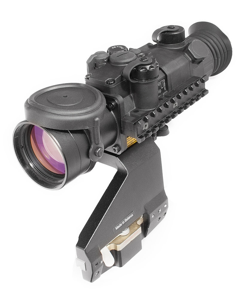Крышка объектива закреплена на жестком пластиковом обруче и защищена от утери. Для наблюдения или стрельбы необходимо сдвинуть крышку, расположив в удобном месте на корпусе объектива. Также прицел оснащаются съемным ИК – осветителем с функцией фокусировки светового пятна.