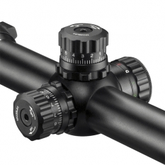 Барабаны ввода поправок по вертикали и горизонтали у прицела открытые, сконструированы по тактической схеме, и имеют цену деления 0.25 МОА. Такая тактическая конструкция позволяет легко вносить необходимые поправки по ходу стрельбы, что особо актуально при стрельбе на дальние дистанции. Для того, чтоб настройки случайно не сбивались во время стрельбы или транспортировки, под барабанами расположены зажимные винты-фиксаторы. Также конструкцией предусмотрена возможность калибровки барабанов для фиксации начальной точки ввода поправок на отметке "ноль".