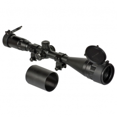 В комплектацию прицела включены дюймовые крепежные кольца с четырьмя зажимными и стопорными винтами. Кольца имеют крепление на планку Weaver/Picatinny. Защитная бленда накручивается вместо съемногог кольца на объективе и защищает оптику от солнечных бликов и осадков.