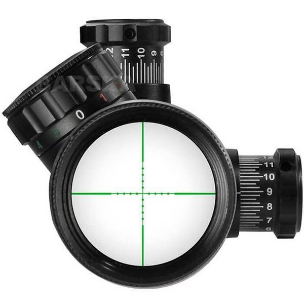 • Подсветка прицельной сетки: красная/зеленая, регулируемая, по 5 уровней яркости для каждого цвета