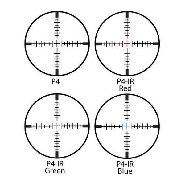 Благодаря дальномерной прицельной сетке P4 IR Cross, расстояние до цели можно определить максимально точно, при этом правильно принять поправку на ветер и учесть траекторию падения пули. Данная прицельная марка размещена во второй фокальной плоскости и верна при 10-кратном увеличении. Сама сетка выполнена методом гравировки на стекле, благодаря чему без проблем противостоит самой серьезной отдаче.