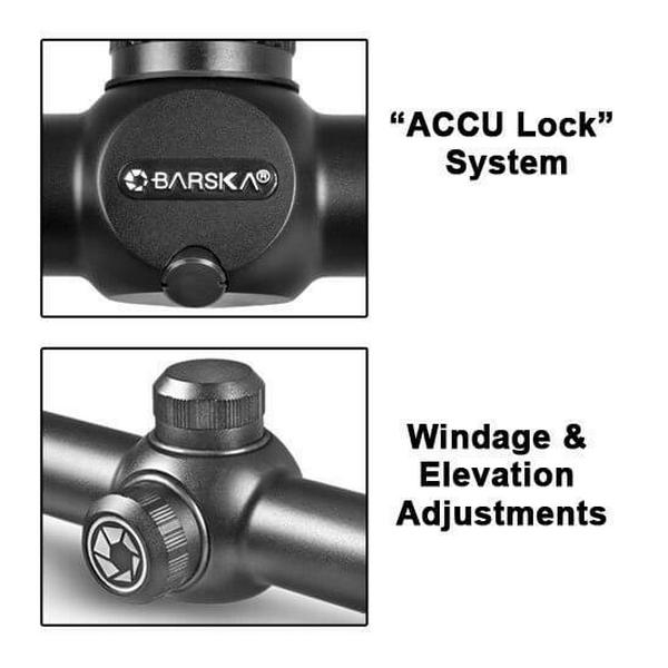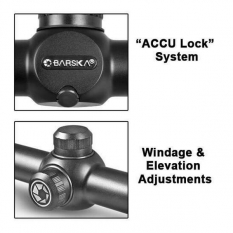 Под защитными алюминиевыми крышками находятся барабаны ввода поправок по вертикали и горизонтали. Барабаны имеют цену деления 0.5 МОА. Система Acu-Lock представляет собой упругую долговечную витую пружину, которая обеспечивает точный возврат механизма введения поправок после импульса отдачи во время стрельбы.Также конструкцией предусмотрена возможность калибровки барабанов для фиксации начальной точки ввода поправок на отметке "ноль".