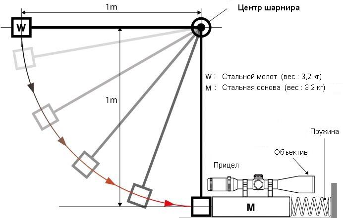 4) Данный тест повторяется пять раз подряд, после чего и проводится реальная оценка ударопрочности прицела.