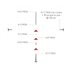 • Цена деления регулировки механизма поправок, угл. мин. 1/4"(0.25 MOA)@100 yds