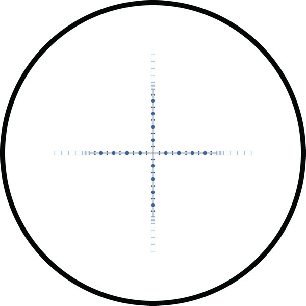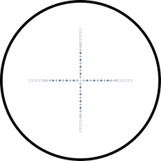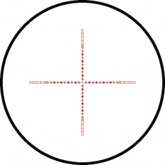 10х 1/2 Mil Dot IR - удобная универсальная сетка для максимально точного прицеливания на различных расстояниях. Главное отличие от обычной прицельной марки Mil Dot состоит в том, что тут имеются дополнительные пересечения, отмечающие пол мила. Все компоненты этой сетки имеют строго регламентированные размеры, расстояния между всеми элементами также регламентированы. Благодаря этому не проблема определить расстояние до цели либо размеры цели, приняв при этом правильную поправку на ветер и определить траекторию падения пули. Данный 1/2 Mil Dot верен при 10-кратном увеличении. Для других увеличений линейные и угловые размеры определяются методом интерполяции, либо по специальным таблицам. Персональную адаптацию сетки под конкретное оружие и тип снаряда позволит совершить бесплатный баллистический калькулятор X-ACT
